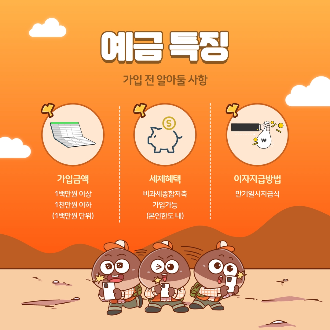 - 세제혜택 : 비과세종합저축 가입가능 (본인한도 내)