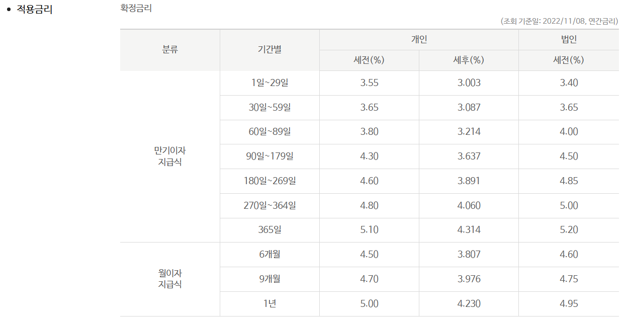 - 기간 : 1년 이내 (만기 자유롭게 선택 가능)