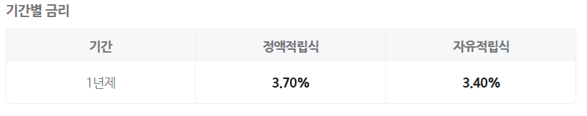 그 외에는 정액적립식은 3.7%, 자유적립식은 3.4%의 기본금리가 적용됩니다.